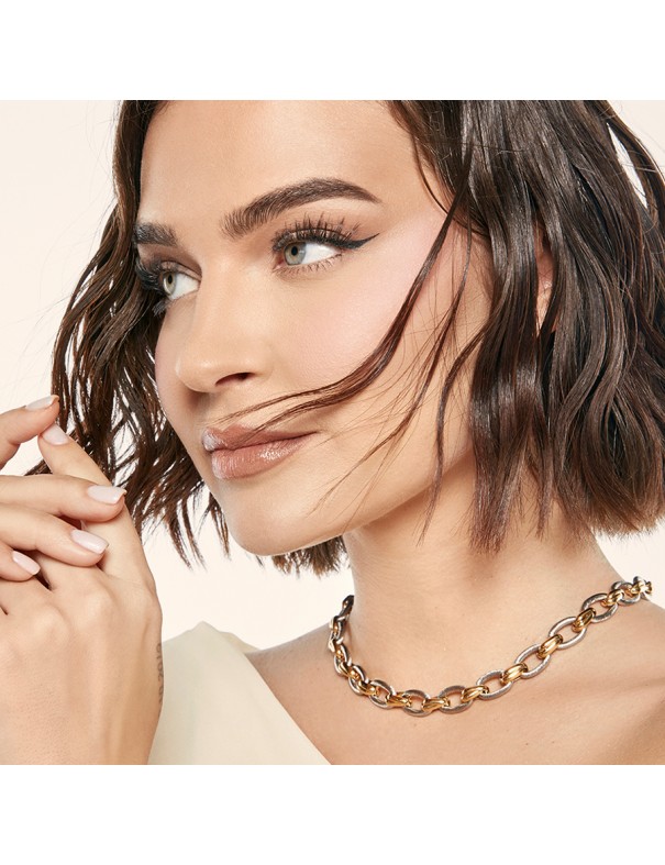 Collar Viceroy Laura Escanes De Acero Bicolor 75363C01019 para mujer con eslabones, fabricado en acero con un baño IP dorado. Mide 50cm de largo más 5cm de extensión.