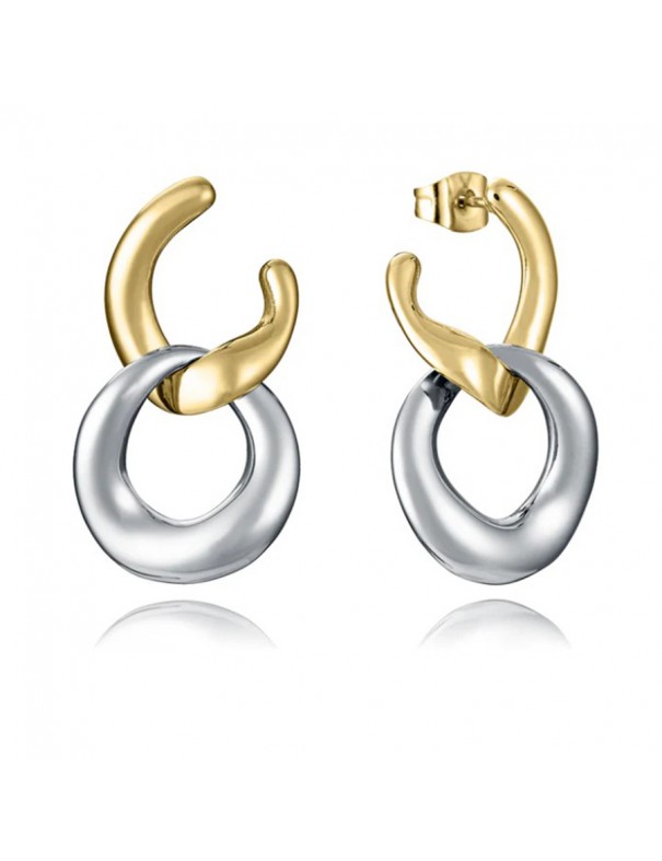Pendientes Viceroy Mujer Acero Dorado y Eslabón Plateado Desmontable 15195E01012. Pendientes de acero con baño IP dorado, color dorado, con diseño de eslabón desmontable que añade movimiento y versatilidad al conjunto.