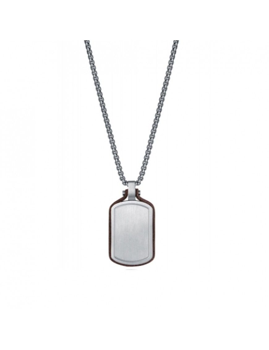 Collar Viceroy Magnum Acero Para Hombre 15076C01011, en acero hipoalergénico. Borde en piel color marrón. Cierre de mosquetón.