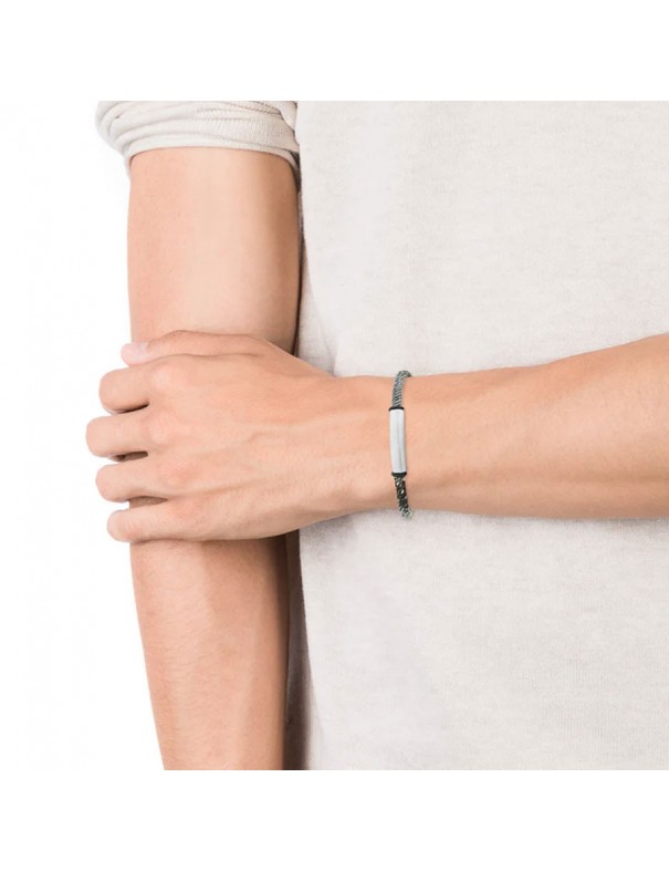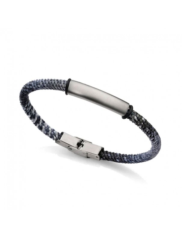 Pulsera Viceroy Beat de acero para Hombre 1384P01000. Realizada con un cordón de tonos grises y azulados y acero. Longitud de 21.5cm. Garantía de tres años.