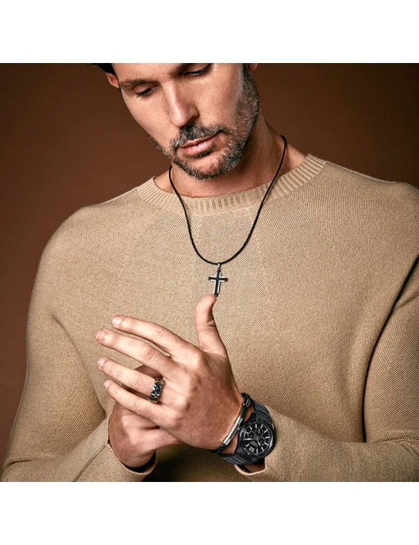 Pulsera Viceroy Beat para hombre 14057P01010. Es de acero y piel y mide 21.5 cm de largo. Garantía de tres años.