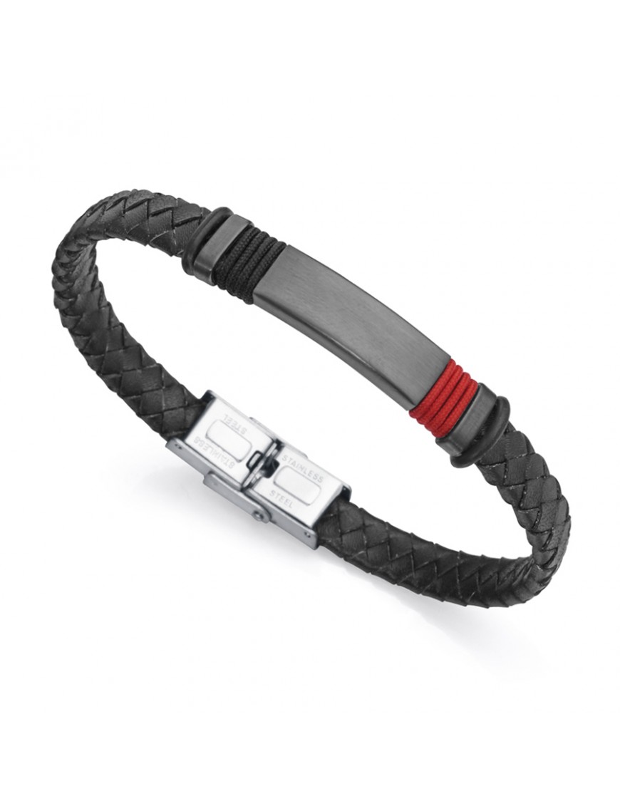 Pulsera Viceroy Magnum para hombre 6480P01010. Es de acero y piel trenzada negra y mide 21,5 cm de largo. Puedes personalizar la chapa y hacer un regalo único y especial.