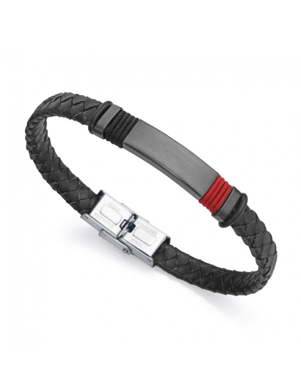 Pulsera Viceroy Magnum para hombre 6480P01010. Es de acero y piel trenzada negra y mide 21,5 cm de largo. Puedes personalizar la chapa y hacer un regalo único y especial. Garantía de tres años.