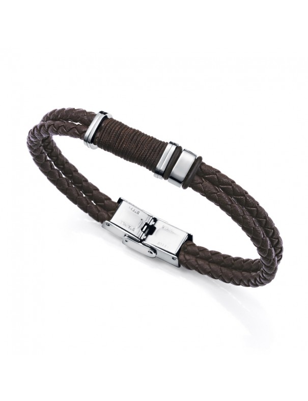 Pulsera Viceroy Doble para hombre 6480P01019. Es de acero y piel trenzada doble marrón y mide 21,5 cm de largo. Garantía de tres años.