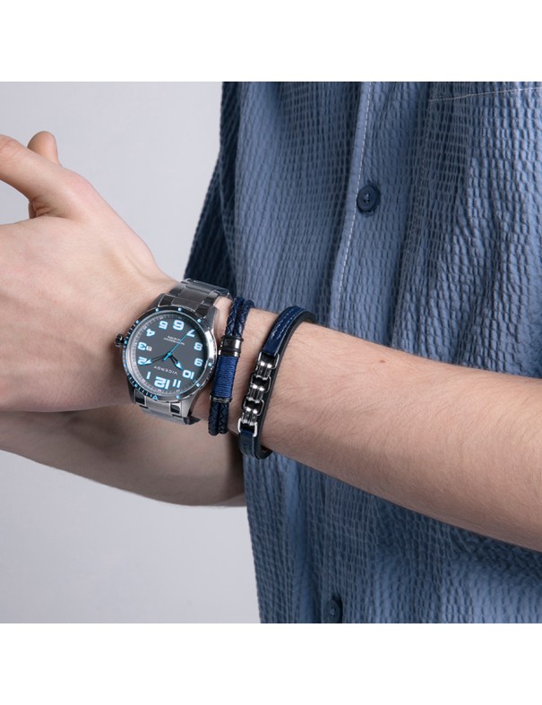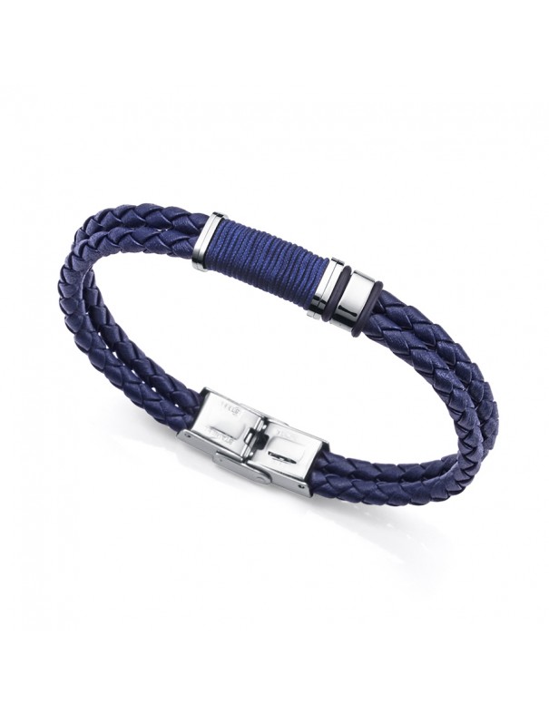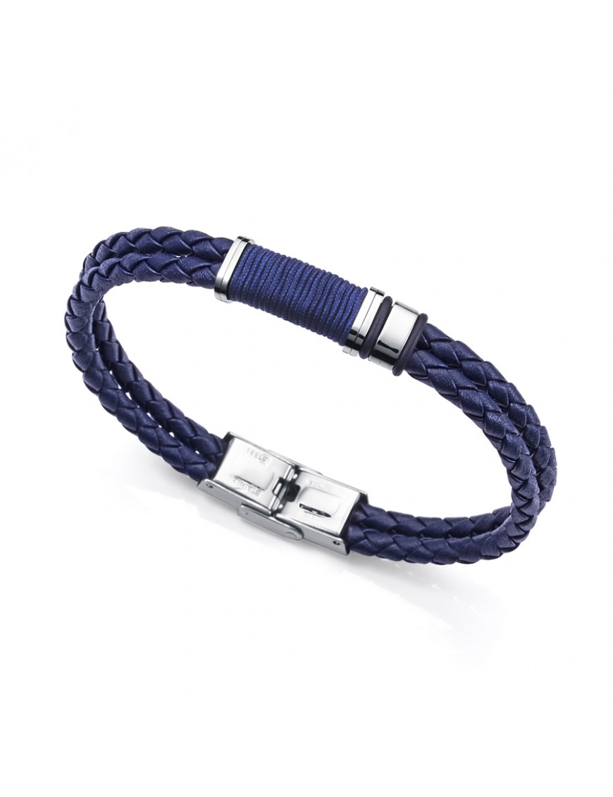Pulsera Viceroy Doble para hombre 14129P01013. Es de acero y piel trenzada doble azul y mide 21,5 cm de largo. Garantía de tres años.