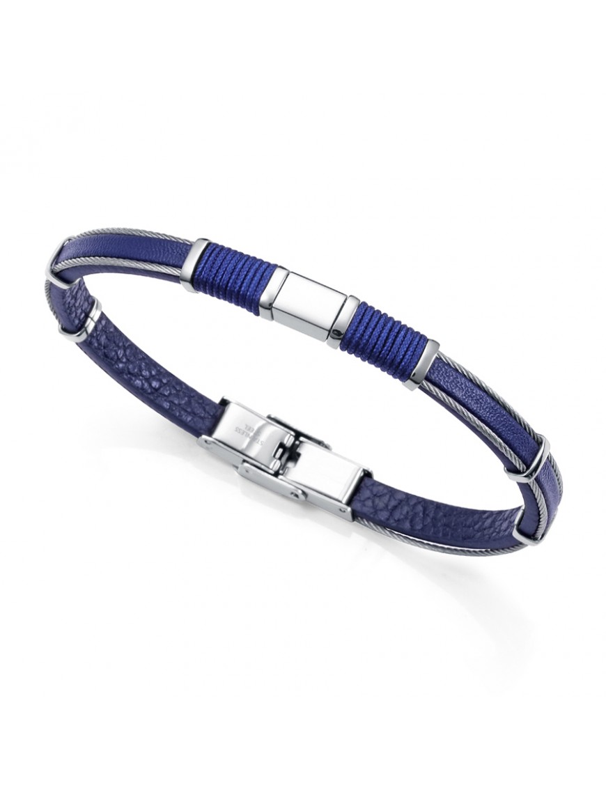 Pulsera Viceroy Magnum para hombre 14127P01013. Es de acero y piel azul, detalles y cable de acero. Mide 21,5 cm de largo. Garantía de tres años.