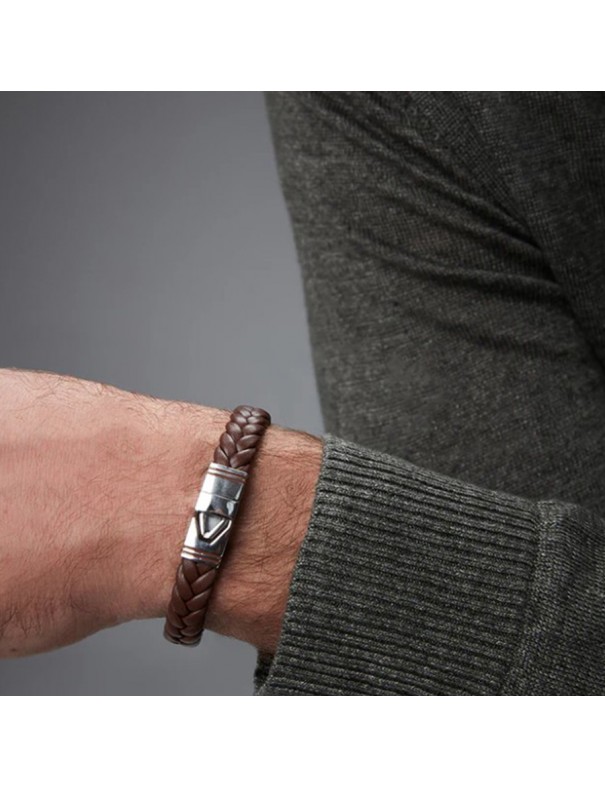 Pulsera Viceroy Hombre Acero y Piel Marrón con Esmalte Marrón 14330P01011. Confeccionada en acero con detalles de piel marrón y acabado en esmalte marrón. Su diseño es sutil, con forma clásica de brazalete. El cierre es de tipo mosquetón en acero. Es un accesorio elegante, ideal para uso diario con un estilo moderno.