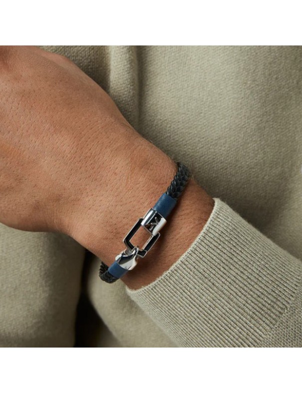 Pulsera Viceroy Hombre Acero y Piel Trenzada Negra con Detalle Piel Azul 15201P01010. Pulsera de acero combinada con piel trenzada en color negro, realzada con un detalle central en tono azul que aporta contraste y modernidad. El cierre metálico asegura un uso cómodo y resistente, ideal para el día a día.