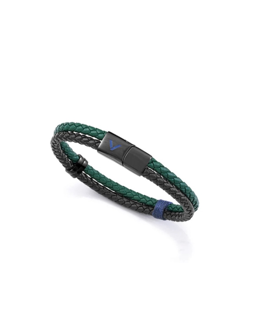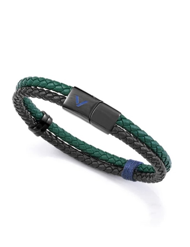 Pulsera Viceroy Hombre Acero y Piel Negra 75426P01016. Realizada en acero combinado con piel trenzada negra y verde. El contraste de tonos y texturas le da un estilo moderno y sofisticado, ideal para un look informal o urbano. Su mezcla de acero con piel le ofrece durabilidad y flexibilidad. Longitud de 21,5 cm, lo que asegura un ajuste cómodo.
