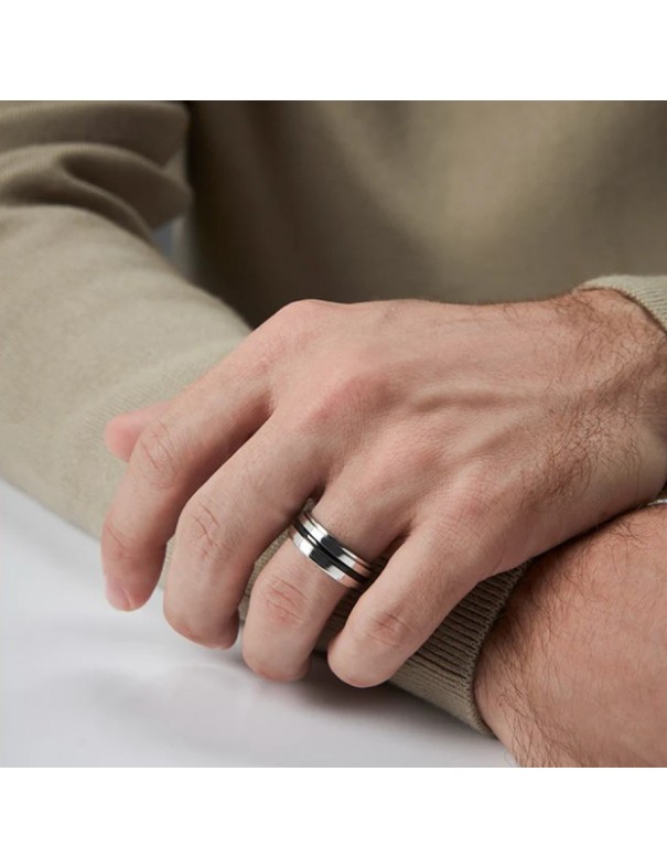 Anillo Viceroy Hombre Acero IP Negro Rotatorio 75431A02600. Fabricado en acero con acabado IP negro, ofreciendo un color negro sobrio y elegante; su diseño rotatorio le da un toque moderno y distintivo. Es una talla 26.