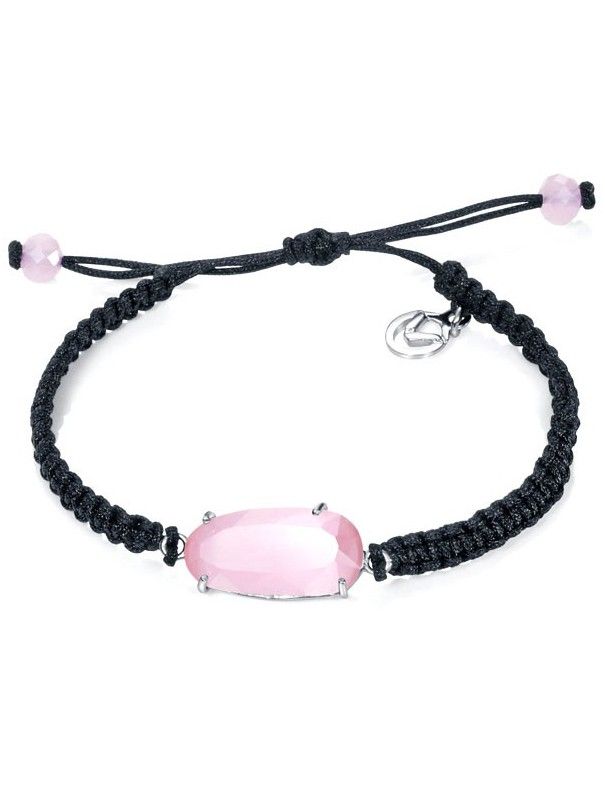 Pulsera Viceroy Plata Mujer 9010P100-47. Es una pulsera original de la marca Viceroy, para mujer de la colección Kiss. Está realizado en plata de ley, 925mls. terminada en piedra ojo de gato color rosado. Tiene un cierre corredizo de macramé negra.
