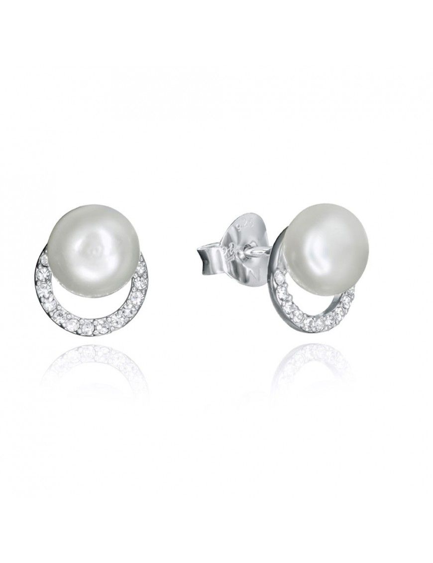 Pendientes Viceroy Plata Mujer 71051E000-68. Son unos pendientes originales de la marca Viceroy de la Colección Clásica para mujer. Su estructura es de plata de ley,925mls, con baño rodiado. aro con circonitas cúbicas transparentes rodeando una perla sintética central.