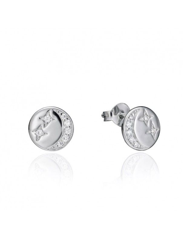 Pendientes Viceroy Plata Mujer 71059E000-30. Son unos pendientes originales de la marca Viceroy de la Colección Popular para mujer. Su estructura es de plata de ley,925mls, con baño rodiado. Disco con circonitas cúbicas transparentes dando forma a luna y estrellas. El diámetro del pendiente es de 8 milímetros