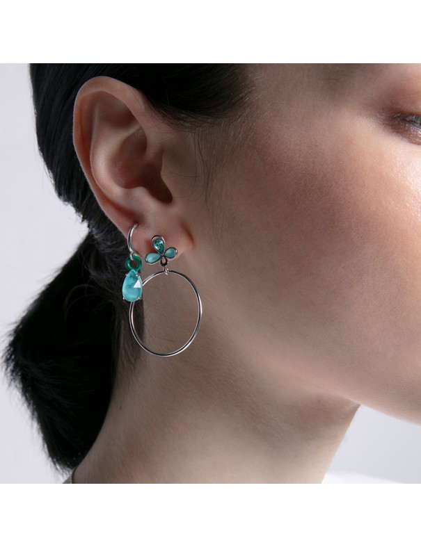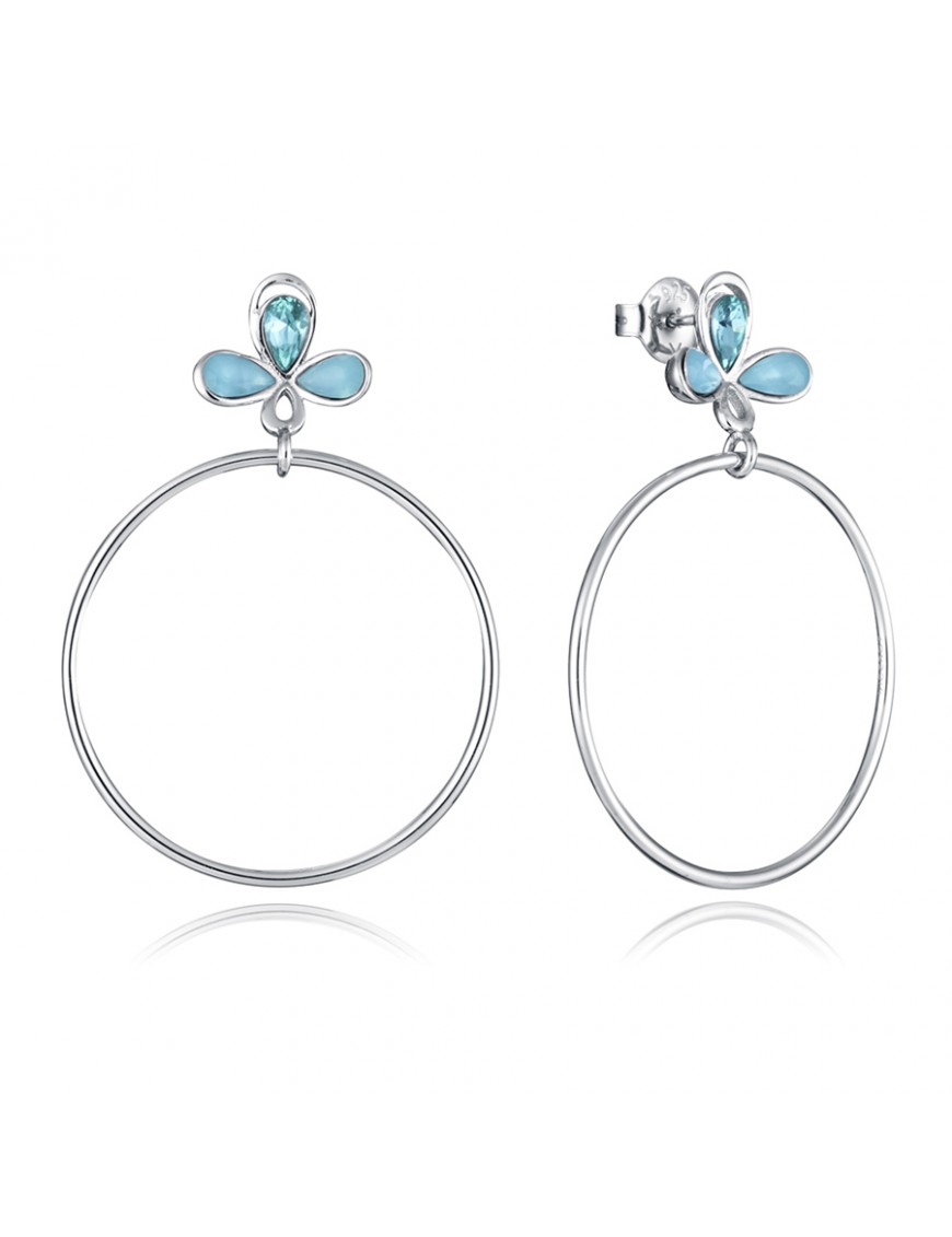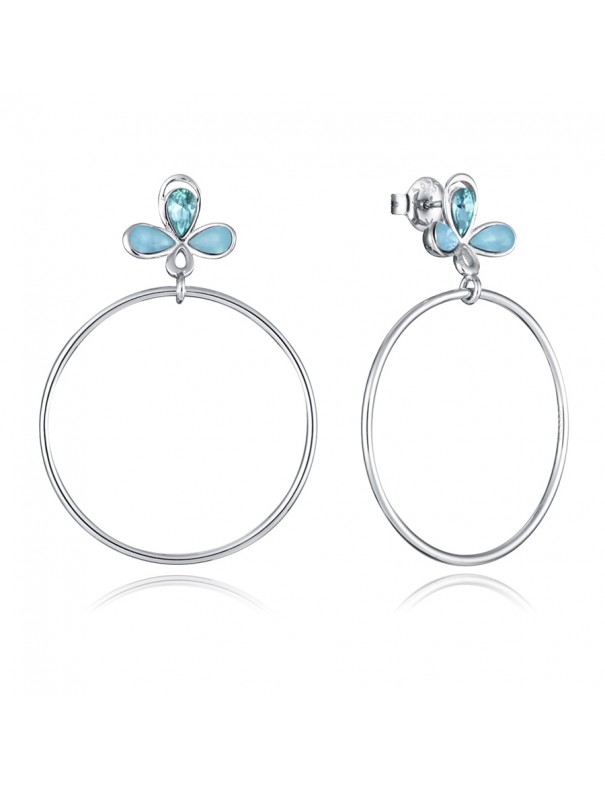 Pendientes Viceroy Plata Aro 13198E000-33, fabricados en plata de primera ley 925mls. Decorado con circonitas de color en tonos azules y un aro colgante. Cierre de presión.