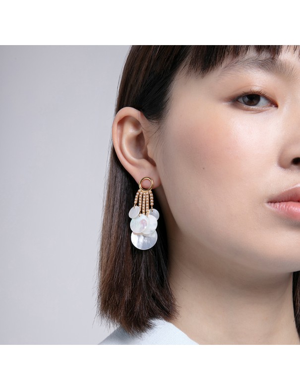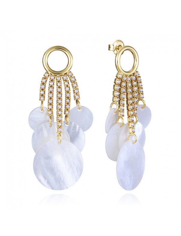 Pendientes Largos Viceroy Plata Dorada Perlas 13192E100-90, fabricados en plata de primera ley 925mls con un baño de oro. Decorados con perlas sintéticas y madre perla blanca. Tienen una longitud de 5,5 cm.