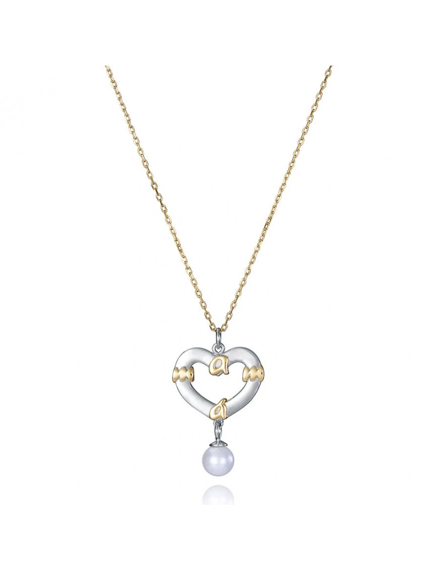 Collar Viceroy de Plata con colgante Mama en forma Corazón 13217C100-69. Realizado con plata de primera ley de 925mls con baño de rodio y con una perla. Largo de 42 mas 3cm.