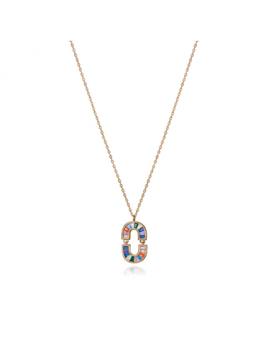 Collar Viceroy Plata con Baño en Oro y Circonitas de Colores 13171C100-39. Fabricado en plata de primera ley bañado en oro. Tiene una forma ovalada unida por dos argollas. Está decorado con circonitas de colores rectangulares.