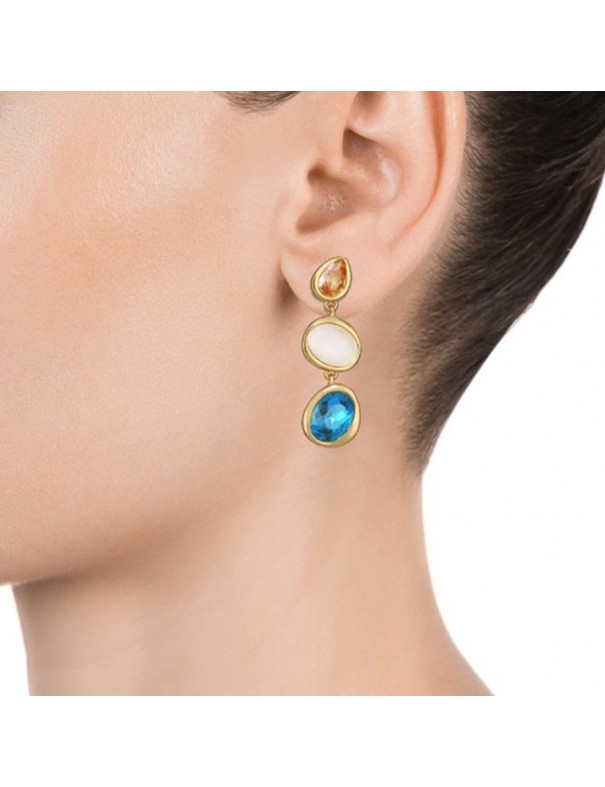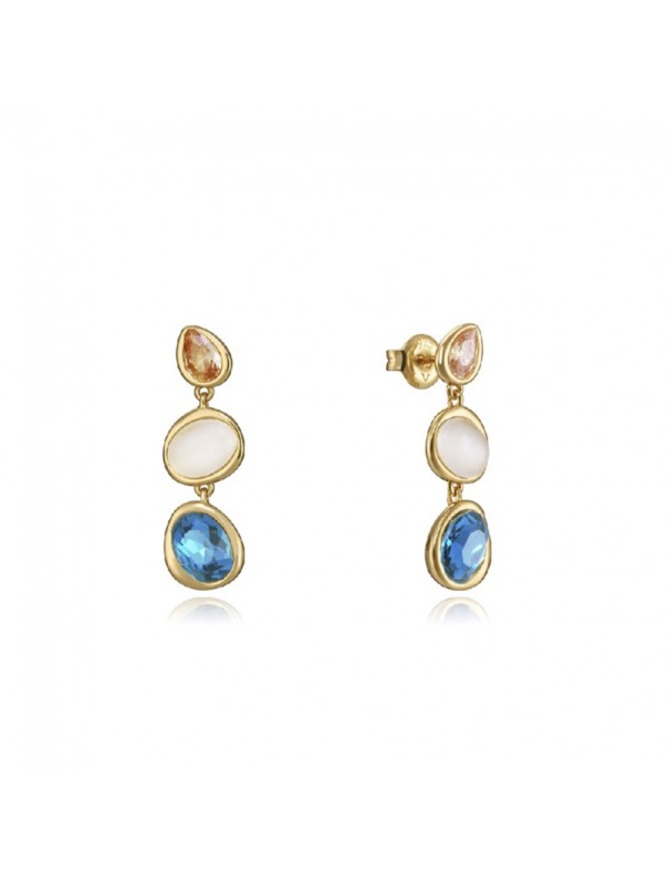 Pendientes Viceroy Plata con Baño en Oro y Circonitas 13175E100-59. Fabricados en plata de primera ley bañados en oro en forma de cascada con tres circonitas en diferente tamaño.
