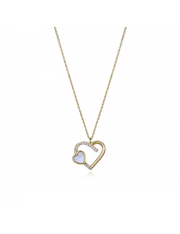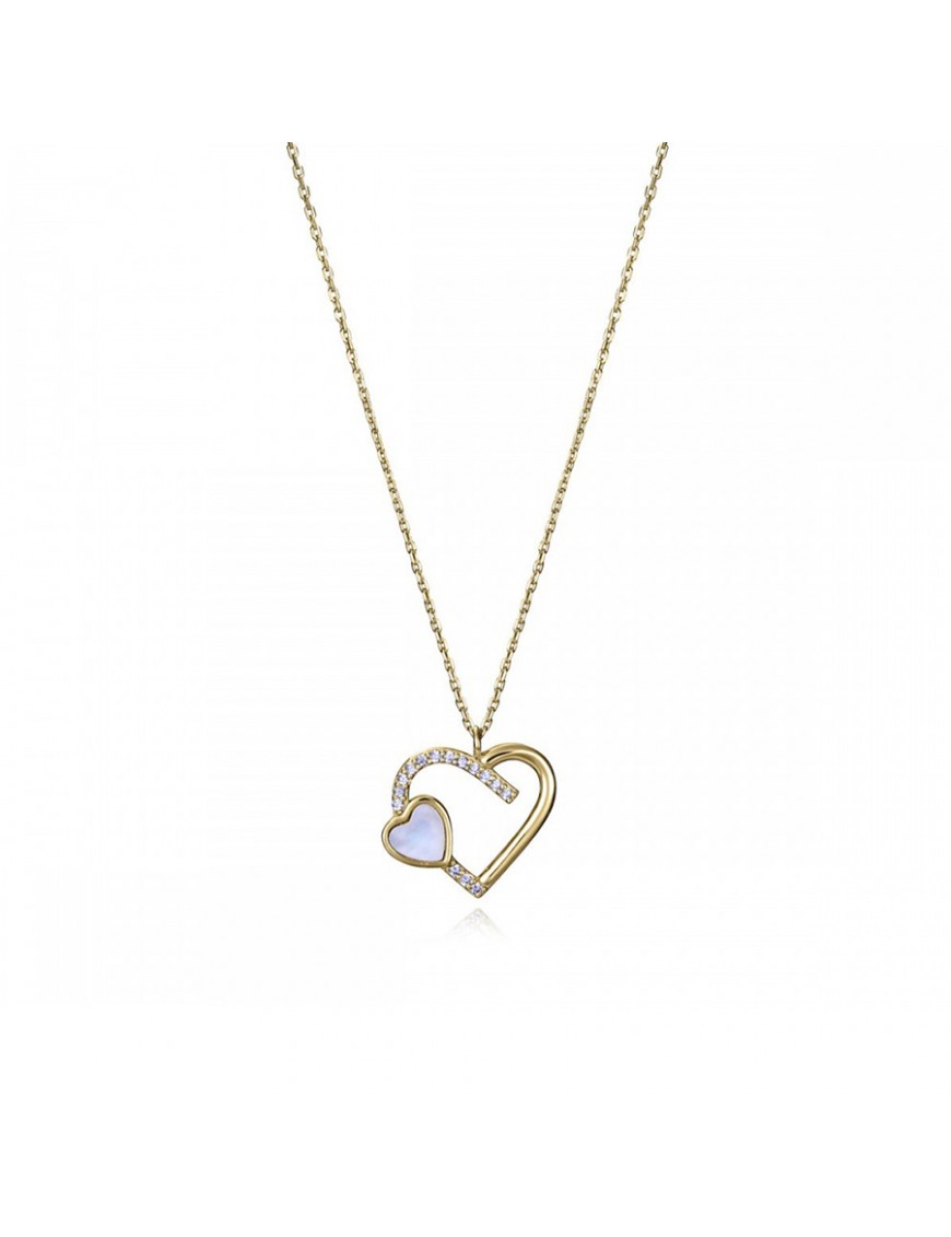 Collar Viceroy Plata Doble Corazón con Baño en Oro y Circonitas 13236C100-90. Fabricado en plata de primera ley con baño en oro. Presenta un corazón grande decorado con circonitas en medio lado y otro corazón más pequeño nacarado en un costado.