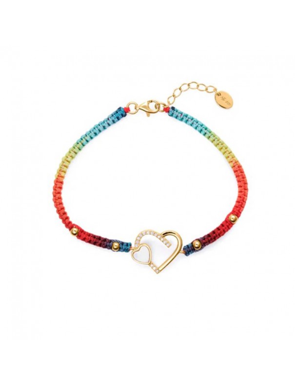 Pulsera Viceroy Plata con Baño en Oro y Macramé de Colores 13236P100-99. Fabricada en plata de primera ley con baño en oro y macramé de colores vivos decorado con un doble corazón con circonitas.