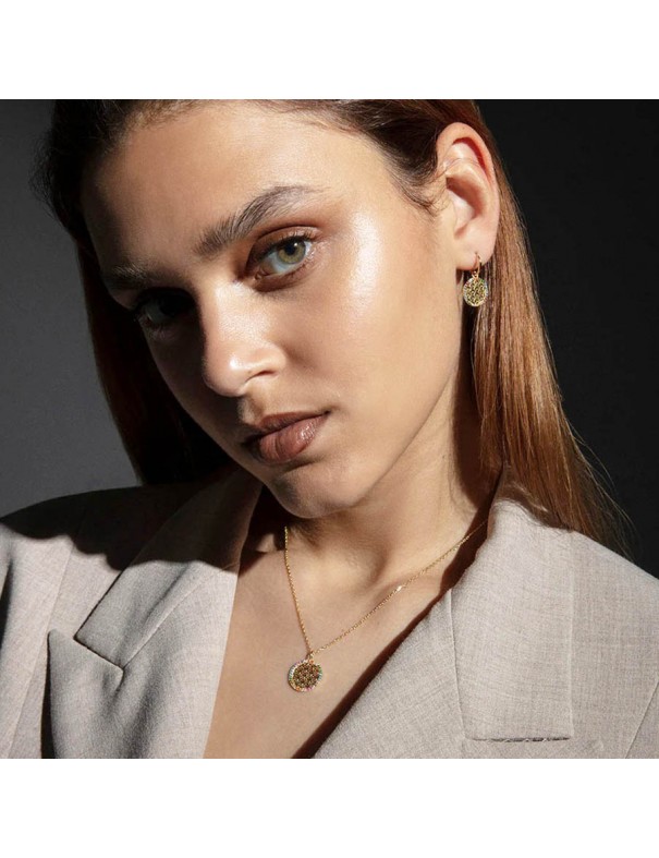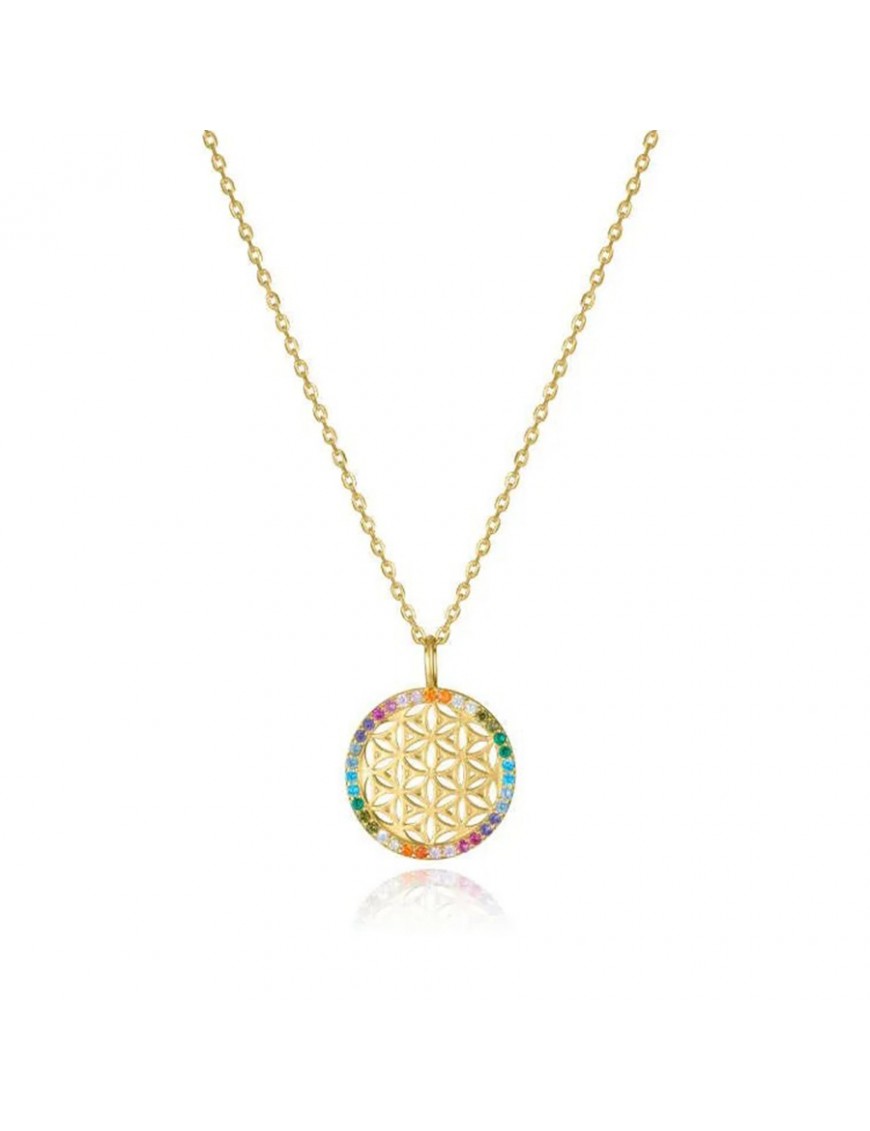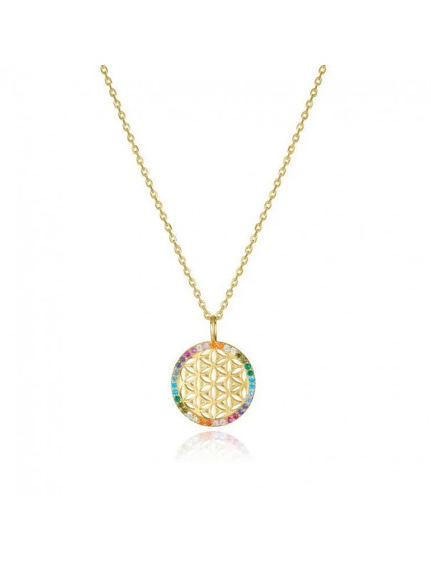 Collar Viceroy Plata con Baño en Oro y Colgante Redondo 15123C100-39. Creado en plata de primera ley con baño en oro. Cuenta con una medalla calada redonda decorada con circonitas de colores alrededor.