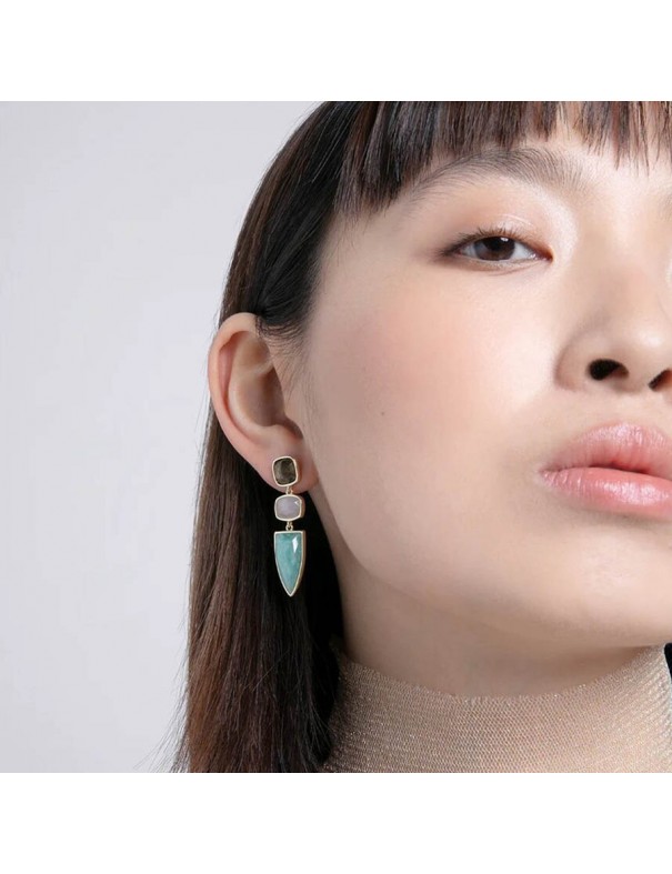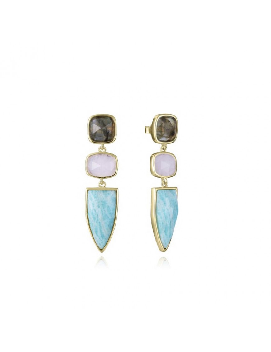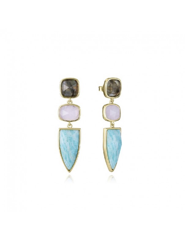 Pendientes Viceroy Plata con Baño en Oro y Piedras Naturales 2303E100-49. Fabricados en plata de primera ley con baño en oro engalanados con tres piedras naturales labradorita, cuarzo rosa y amazonita.