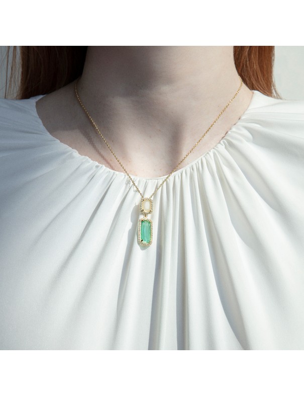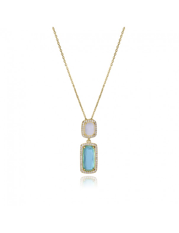 Collar Viceroy Plata con Baño en Oro y Dos Cristales 2305C100-59. Fabricado en plata de primera ley con baño en oro y dos cristales en color verde y blanco, ambos recubiertos por circonitas blancas.