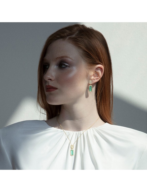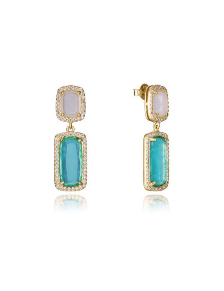 Pendientes Viceroy Plata con Baño en Oro y Dos Cristales 2305E100-59. Fabricado en plata de primera ley con baño en oro y dos cristales en color verde y blanco, ambos recubiertos por circonitas blancas.