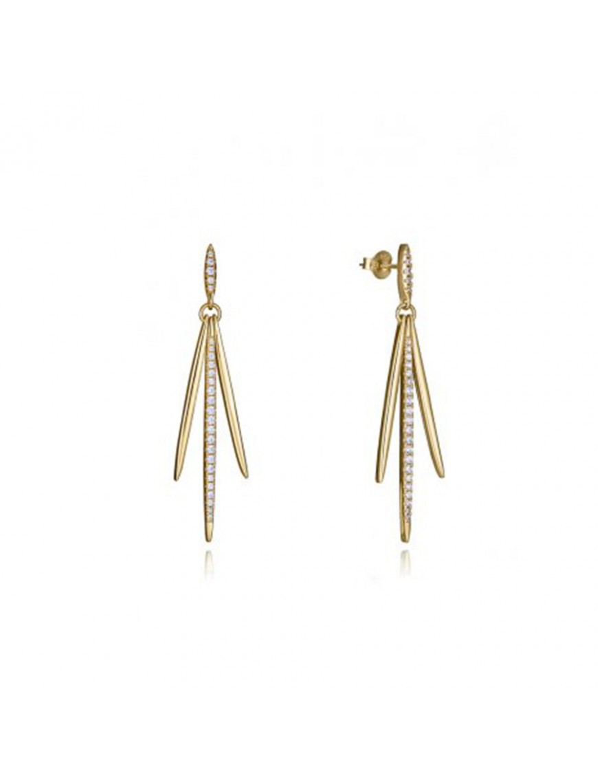 Pendientes Viceroy Plata con Baño en Oro y Tres Colgantes 2321E100-30. Fabricados en plata de primera ley con baño en oro. Presenta tres colgantes en el que el del medio está decorado con circonitas blancas.