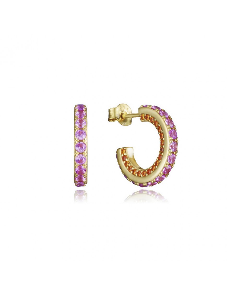 Pendientes Viceroy Plata con Baño de Oro Aro Abierto con Circonitas 9127E100-39. Fabricado en plata de primera ley con baño en oro. Presenta un modelo de aro abierto adornado con circonitas en color rosa y naranja.