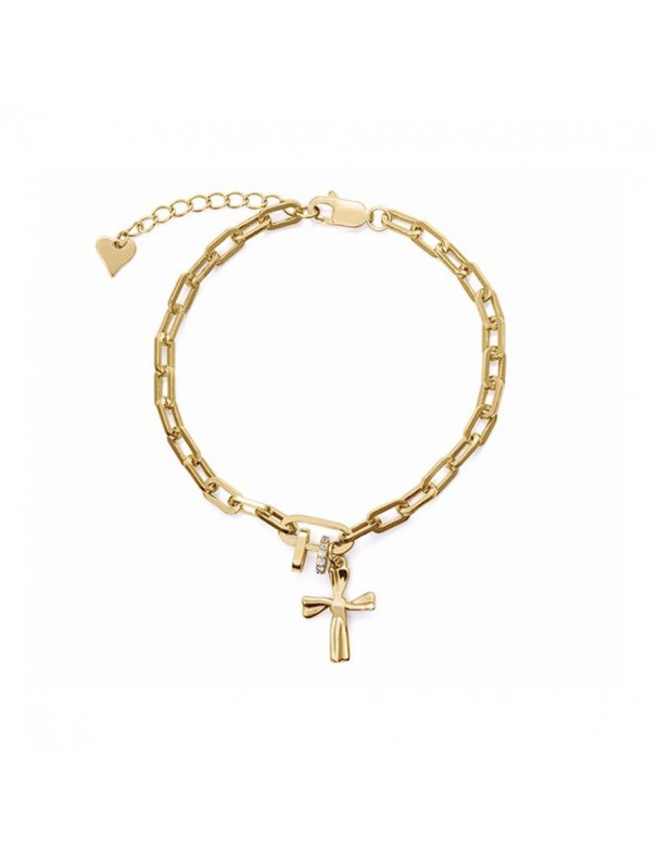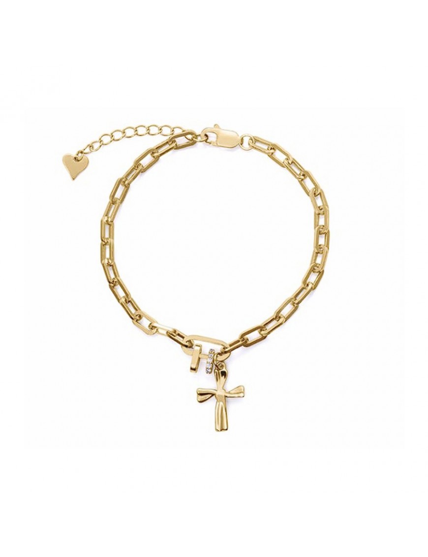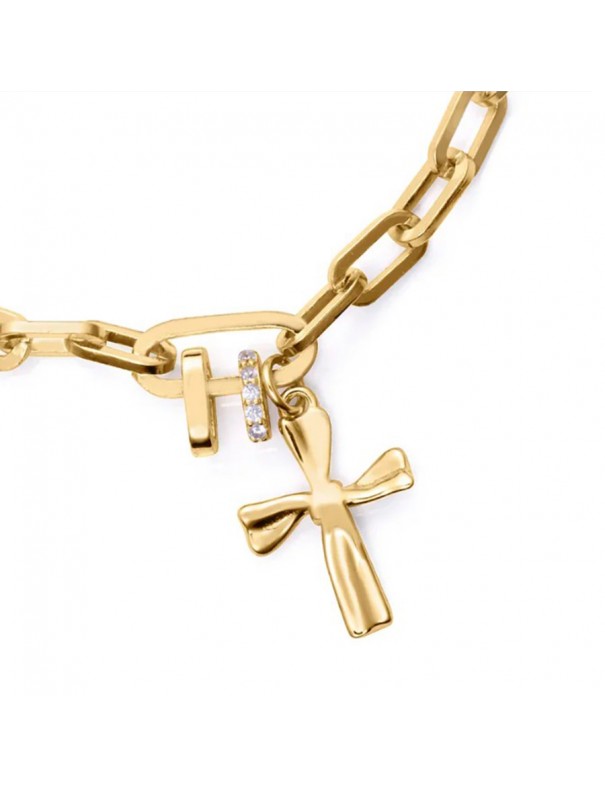 Pulsera Viceroy Plata Niña con Baño en Oro Circonitas y Cruz Colgante 9145P100-30. Fabricada en plata de primera ley con baño en oro. La pulsera presenta un diseño de eslabones decorada con circonitas blancas y una cruz colgante.