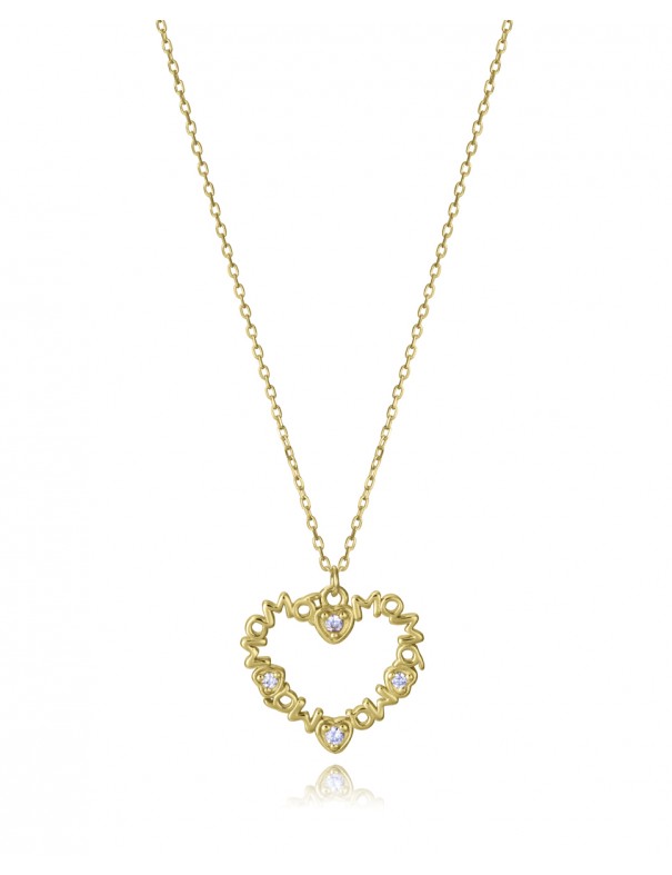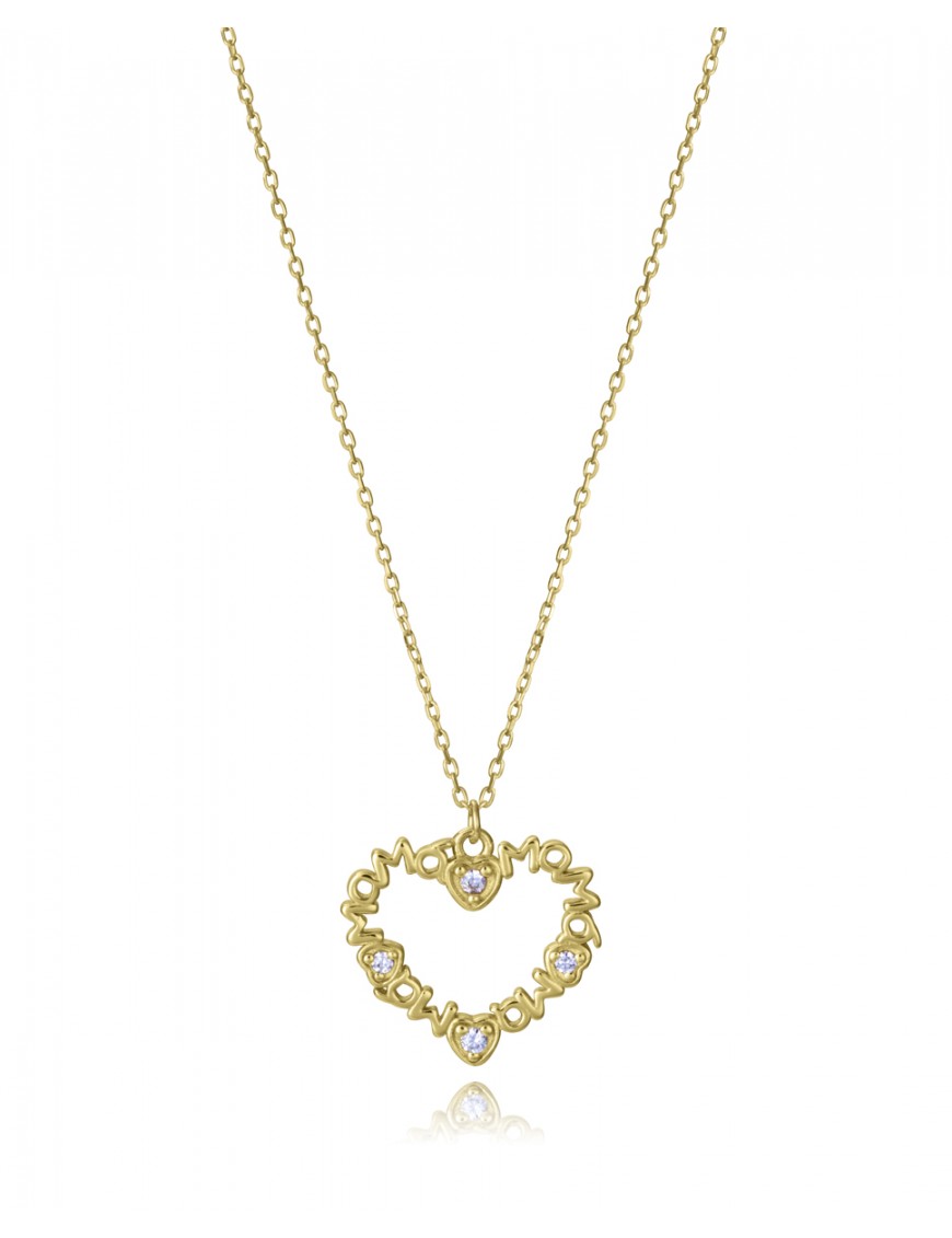Collar de Plata de Primera Ley con Baño de Oro con Forma de Corazón "Mamá" 13248C100-30. Collar fabricado en plata de primera ley con baño en oro. Presenta forma de corazón con la palabra "Mamá" adornado con circonitas blancas. La cadena tiene una largura de 42cm con 3cm de extensión.