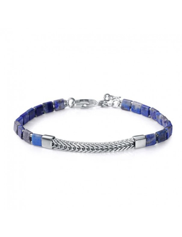 Pulsera Viceroy de Plata con Baño de Rodio y Piedras Naturales Azules 132557P000-43. Fabricada en plata de primera ley con baño de rodio, de tono plateado. Incorpora piedras naturales de lapislázuli de color azul distribuidas a lo largo de la pieza. Su diseño incluye un tramo central de plata trenzada, y su longitud es de unos 19,5 cm + 3 cm de alargador.