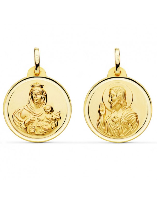 Escapulario Oro 18kts 20mm M5003-120, fabricado en oro de 18kts. Diámetro de 20mm. Imagen Virgen del Carmen y Corazón de Jesús.
