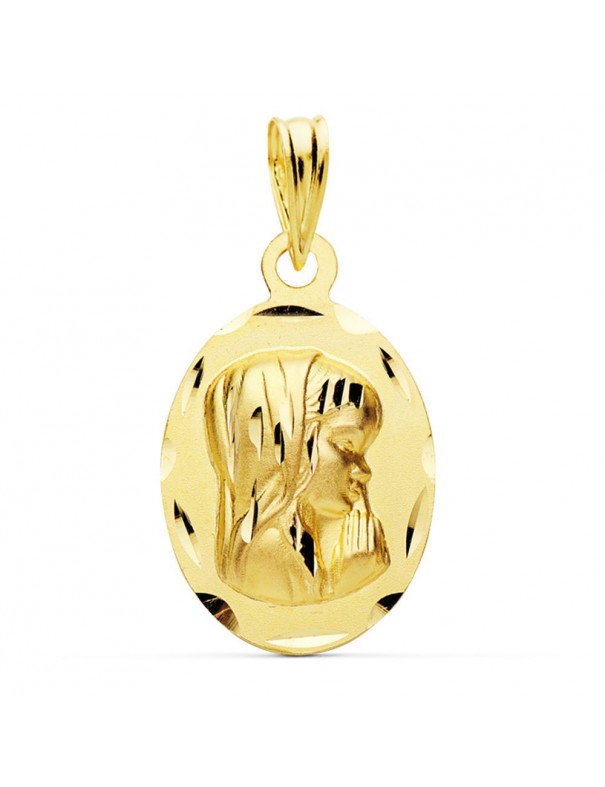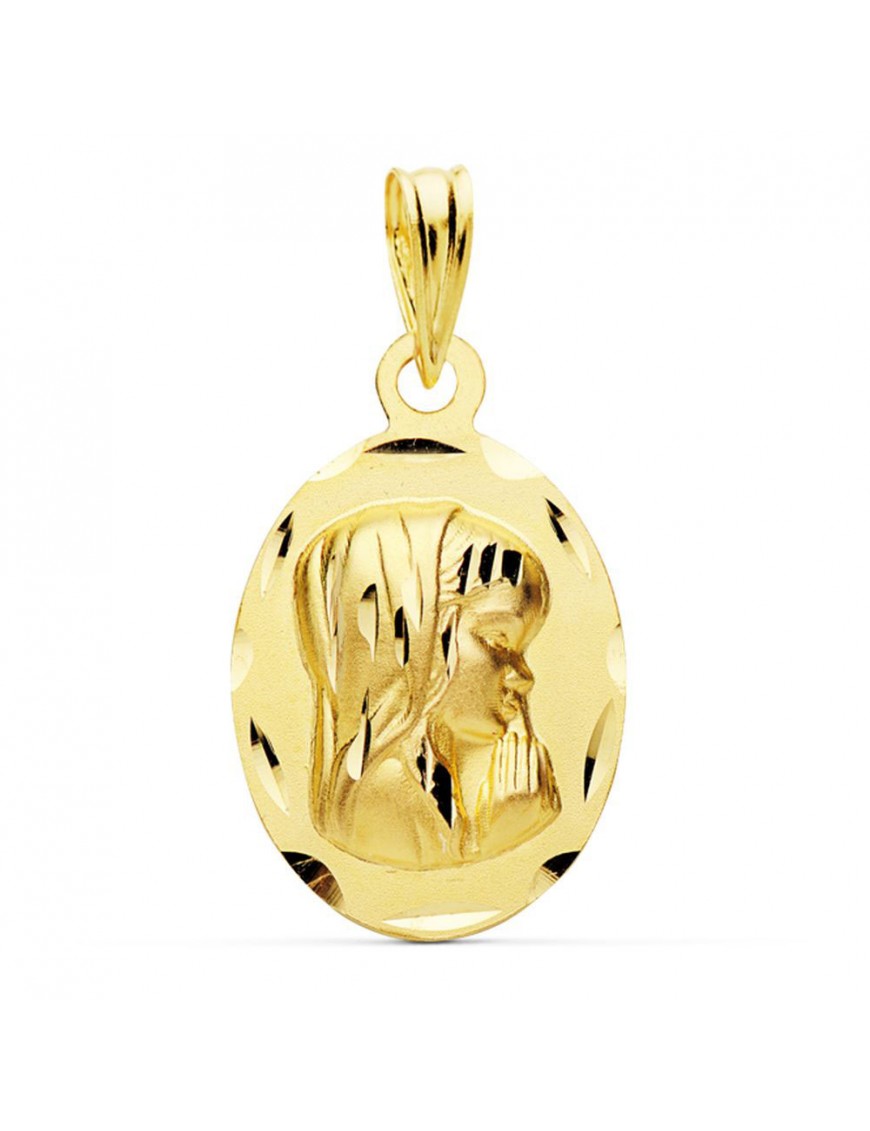 Medalla Virgen Niña 18kts Ovalada M9168-319, fabricada en oro de 18kts. Forma ovalada de 19x12mm. Admite grabado en la parte trasera.
