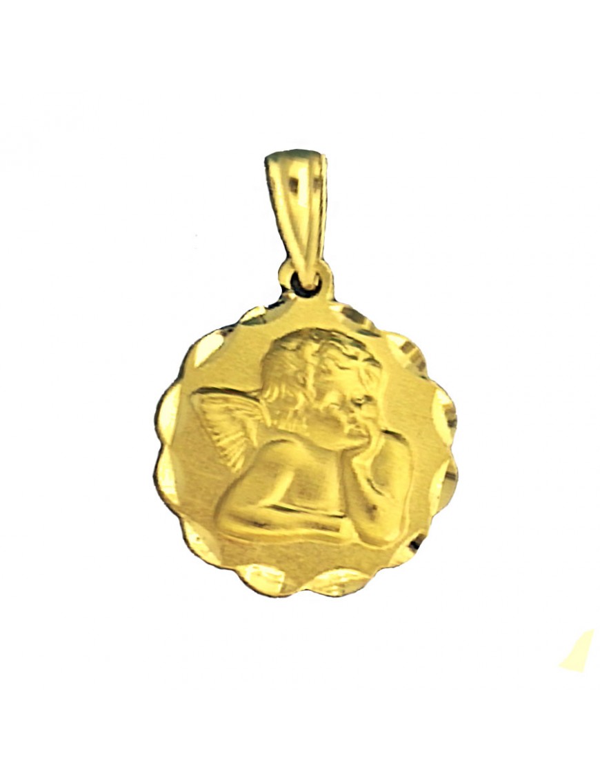 Medalla de oro amarillo Angelito M1145. Es de oro de primera de 18 quilates y mide 14 mm de diámetro.
