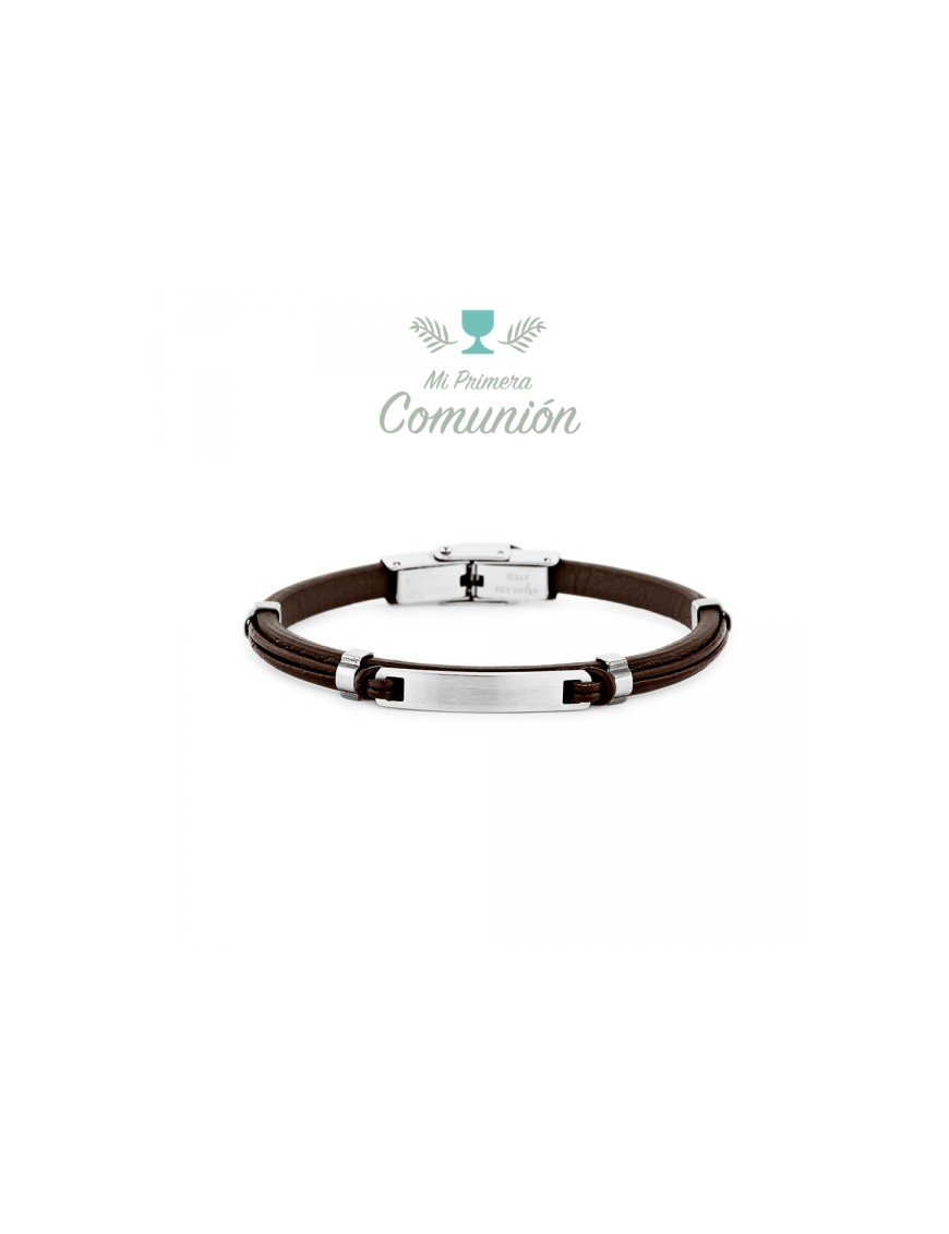 Pulsera De Piel Para Niño 9106071, de acero y cuero de color marrón. Longitud de 17cm ajustable. Chapa matizada.