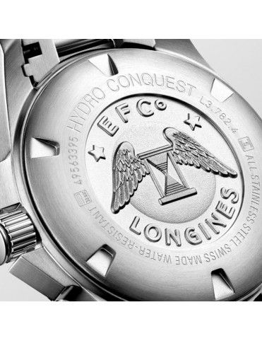 Reloj Longines Hydro Conquest Hombre L37824766, analógico automático. Esfera de 43mm de diámetro con ventana de calendario. Agujas e indicadores luminiscentes. Reserva de carga de 72 horas. Bisel giratorio unidireccional. Pulsera de acero. Cristal de zafiro con tratamiento anti reflejos. Sumergible a 30ATM, por lo que es apto para ducha y baño con inmersión (inmersión con botella).