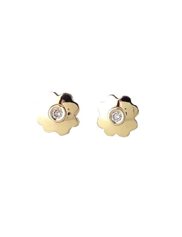 Pendientes MRJY, para niña, modelo 61A3211/2. Son unos pendientes en forma de trébol doble con ocho puntas en oro amarillo de 18 kilates con circonitas blancas.