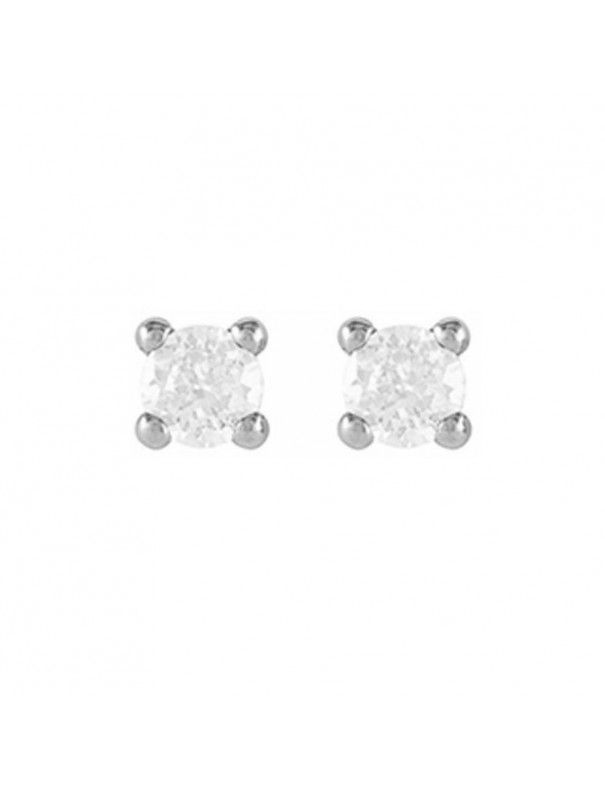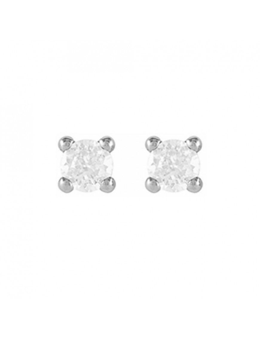 Pendientes Oro blanco 18Kts niña 61B1891/1. Son unos pendientes fabricados por la marca Eles Niña, para niña. Están hechos de oro blanco de 18Kts,. Cuatros garras retienen una circonitas traslucida. Los pendientes miden 2,8 milímetros.