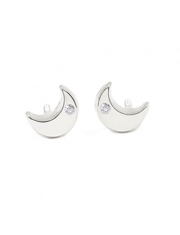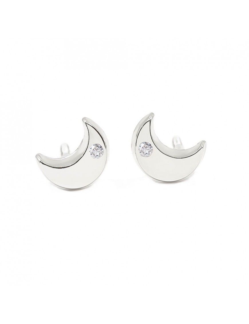 Pendientes Oro Blanco 18kts Niña Luna 41B3380, decorados con circonita. Tamaño de 6.5mm. Cierre de rosca.
