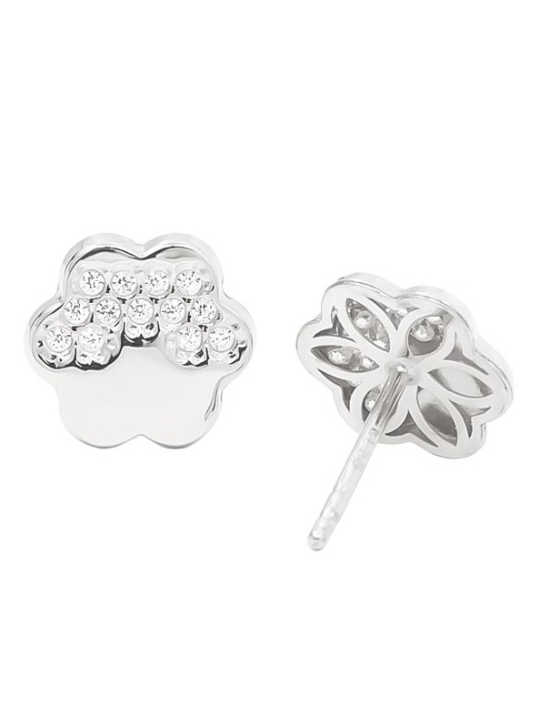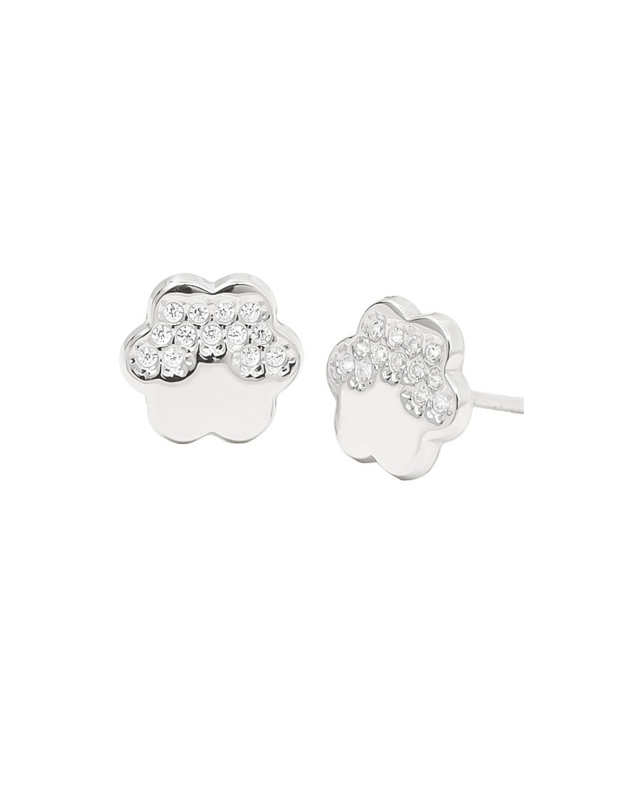 Pendientes de oro blanco flor 41B4223 para niña o mujer. Están fabricados en oro de 18 kts y circonitas. Llevan cierre de presión. Garantía de tres años.