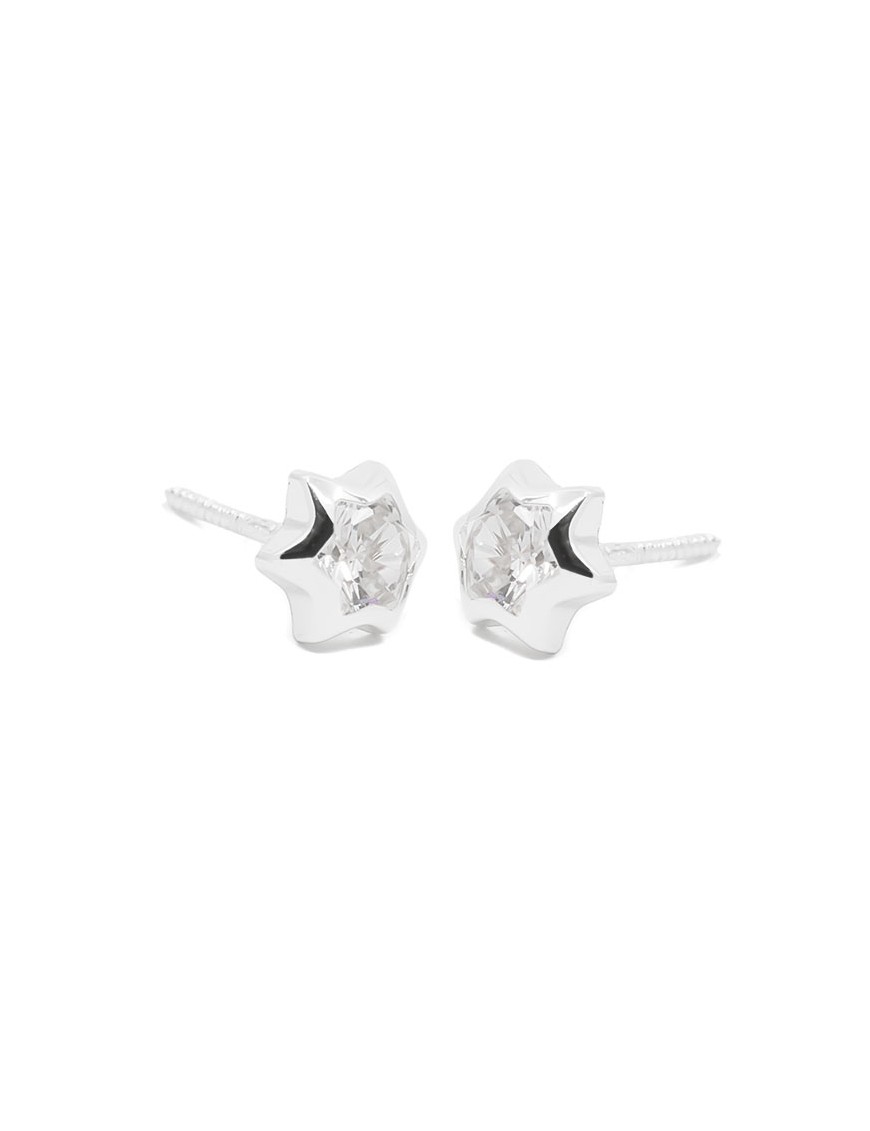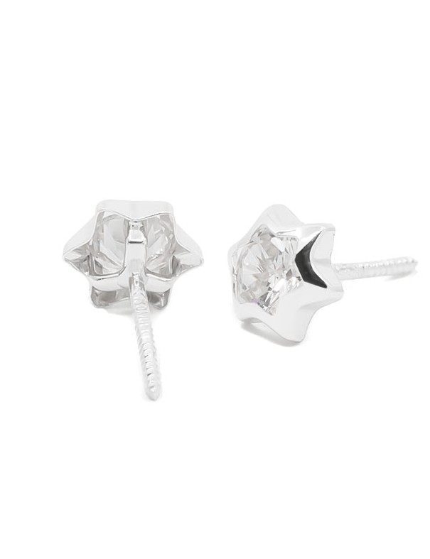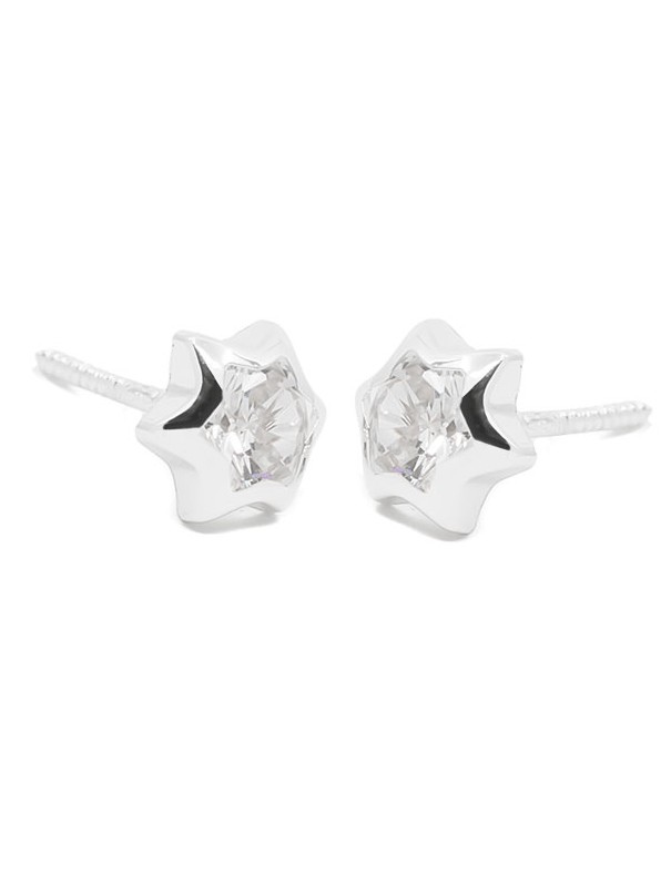 Pendientes de oro blanco estrella 61B1012/4 para niña. Son de oro blanco de 18 kts y circonitas. Miden 6 mm de diámetro y tienen cierre de rosca. Garantía de tres años.