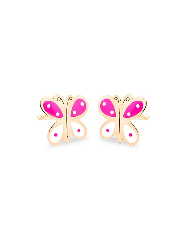 Pendientes de oro amarillo mariposa 69AP72/RB para niña. Son de oro amarillo de 18 kts y esmalte. llevan cierre de rosca y miden 6 mm de diámetro. Garantía de tres años.