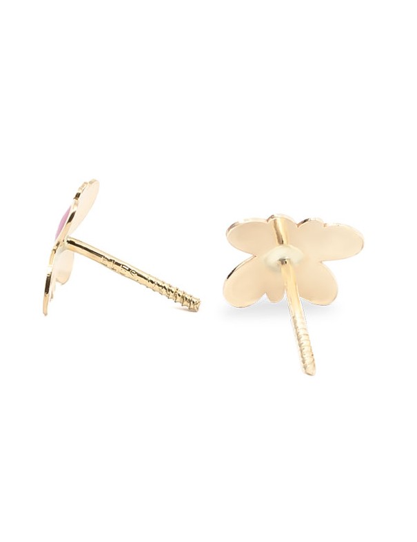 Pendientes de oro amarillo mariposa 69AP73/RB para niña. Son de oro amarillo de 18 kts y esmalte. Llevan cierre de rosca y miden 7 mm de diámetro. Garantía de tres años.