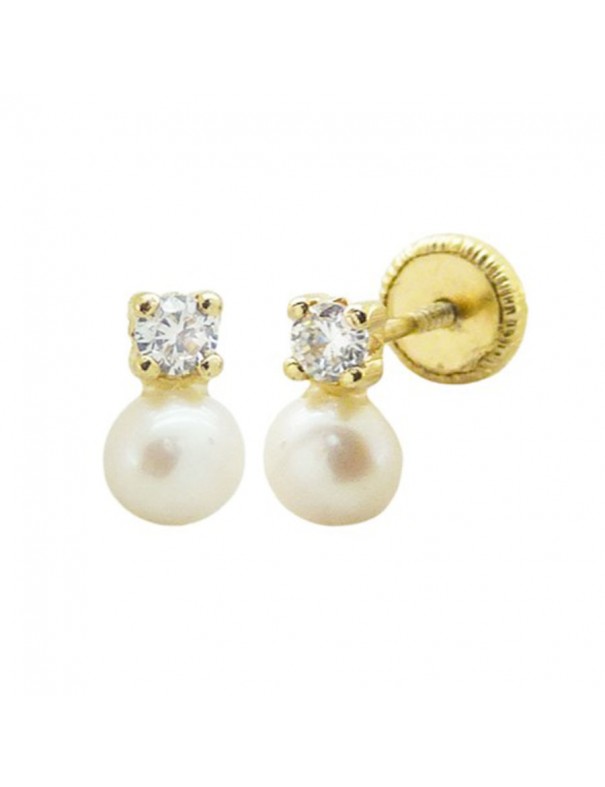 Pendientes Oro Garra de 2mm y Perla de 3mm 6823. Pendientes de oro18k de botón formados por un brillantes con garras de 2mm y perla de 3mm. Tiene cierre de tornillo.