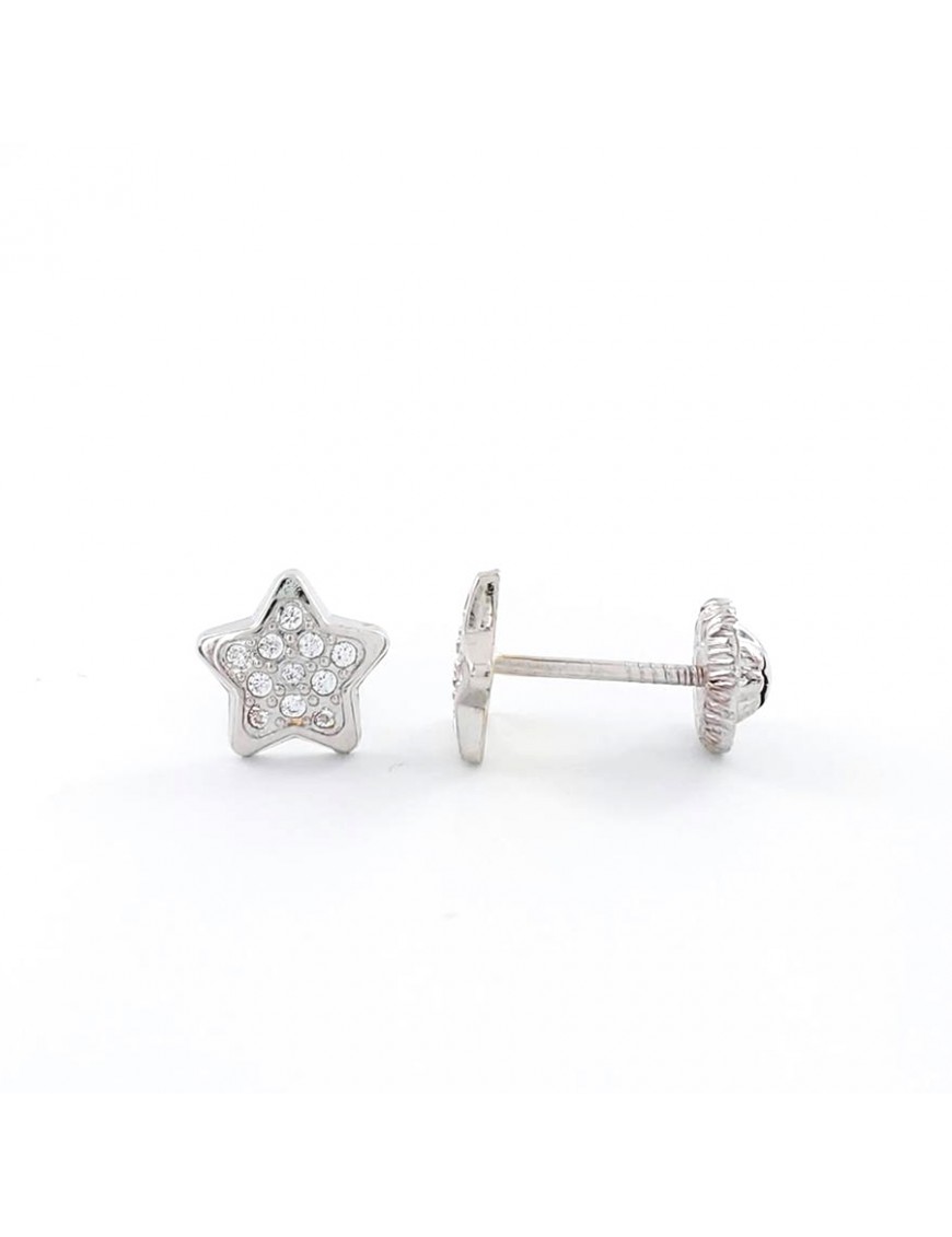 Pendientes Oro Estrella Circonitas 1395039PB. Pendientes de oro blanco de 18k con forma de estrella adornadas con circonitas blancas. Tiene cierre de tornillo.