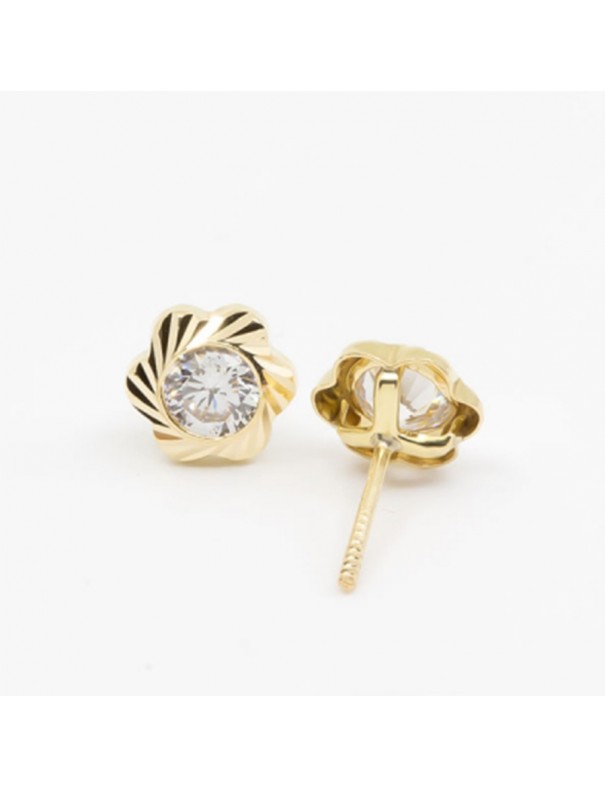 Pendientes Eles Oro 9kts Flor Rallada Grande 91A1102. Pendientes para niña de oro amarillo de 9kts con forma de margarita tallada con circonita. Tienen un tamaño de 6mm y cierre de rosca.
