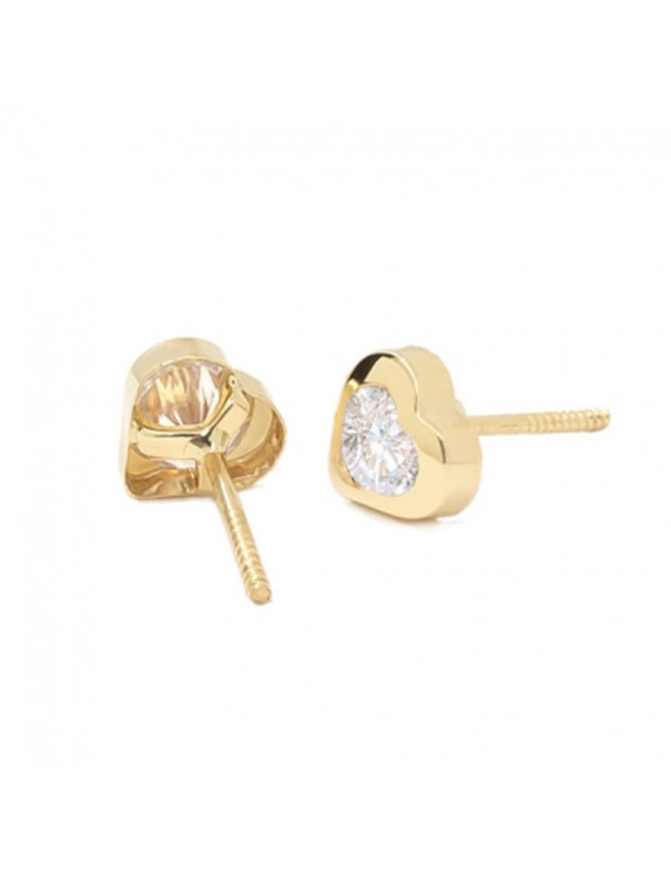 Pendientes Eles Oro de 9kts Corazón Pequeño 91A2171. Pendientes para niña de oro amarillo de 9kts con circonita de 3mm sujeta por 4 garras de oro. Tienen cierre de rosca.