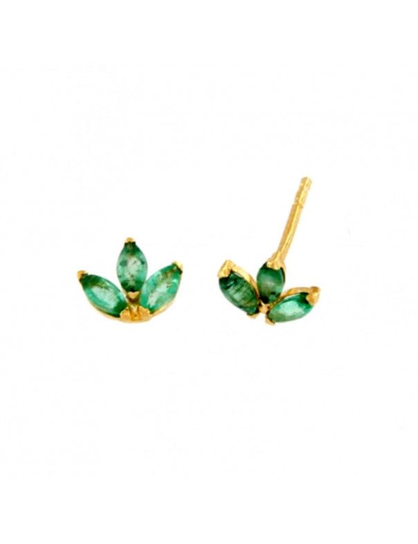 Pendientes Oro Amarillo Y Esmeralda 3738-ES-PRE2, en oro amarillo de 18 kts y esmeralda talla marquis de 4X2mm, formando flor de 7mm. Cierre de presión.